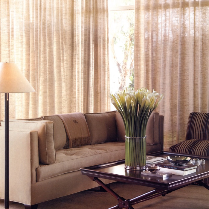LINEN CREPE color: Flax, as semi-sheer drapery